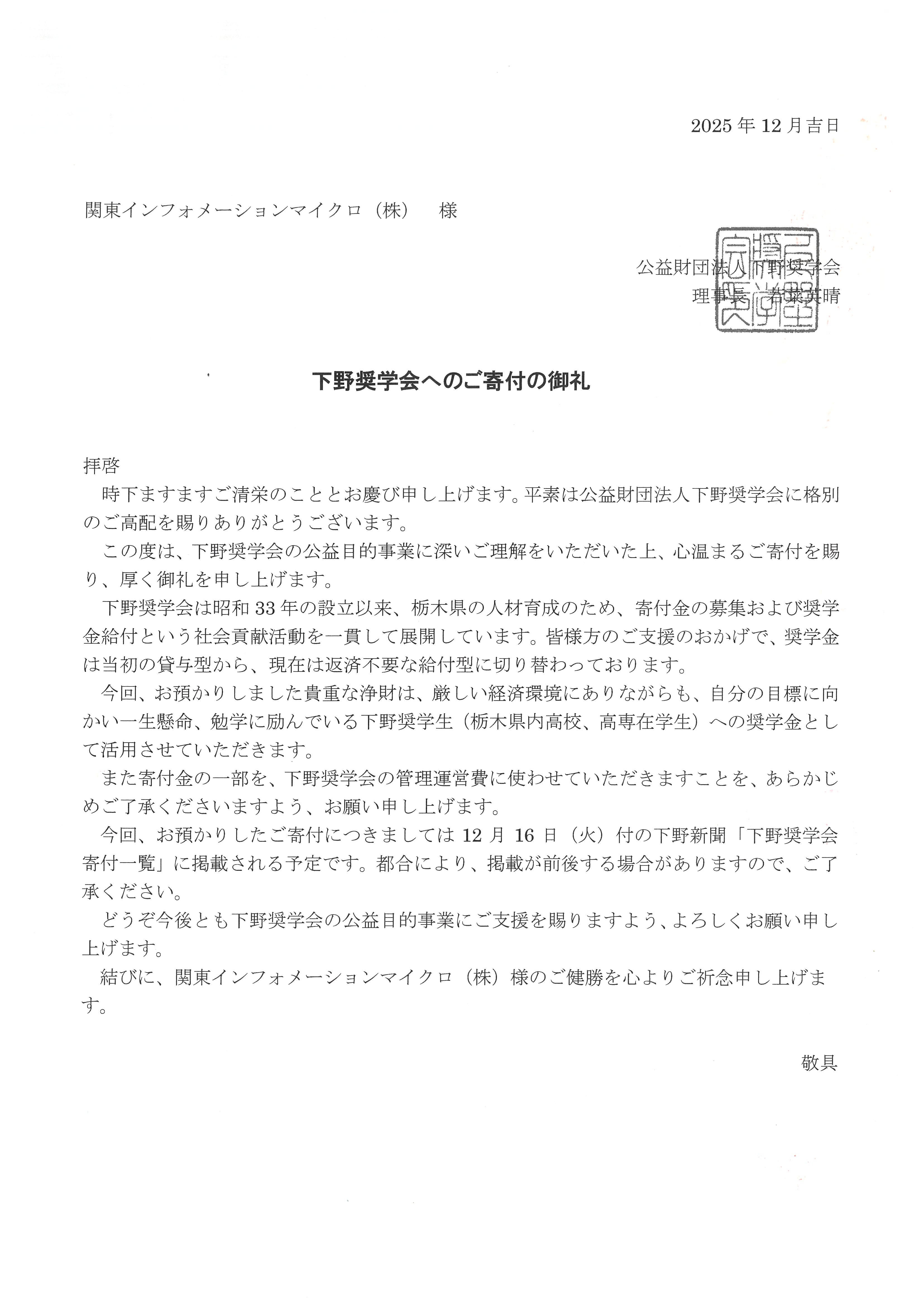 2025年12月に弊社公式HPの社会貢献活動ページに掲載させて頂きました。