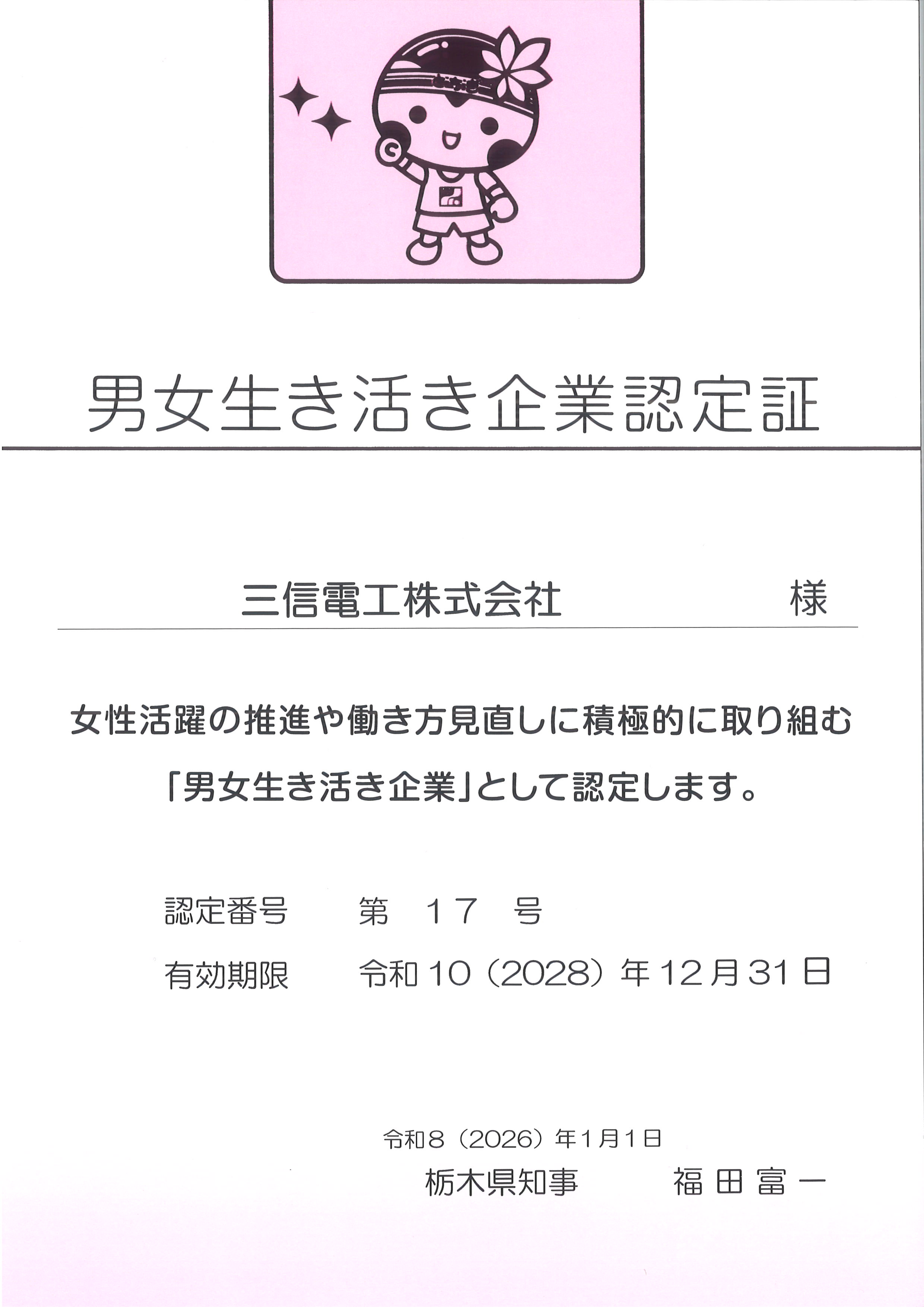 更新認定されました。 今後も女性の活躍推進や働き方の見直しに積極的に取り組んでいきたいと思います。