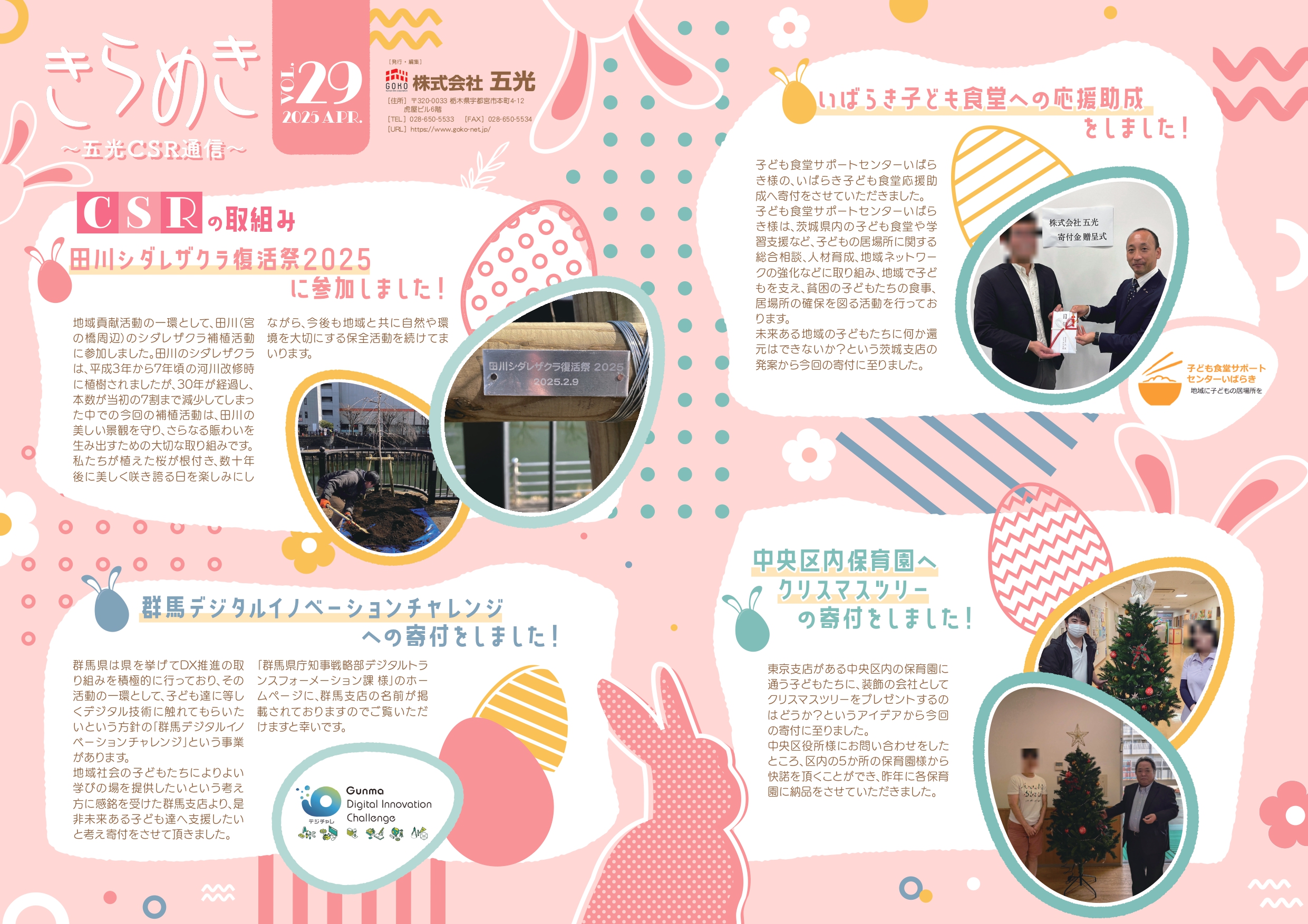 弊社にて発行しているCSR活動や地域行事を紹介するCSR広報誌「きらめき」を、