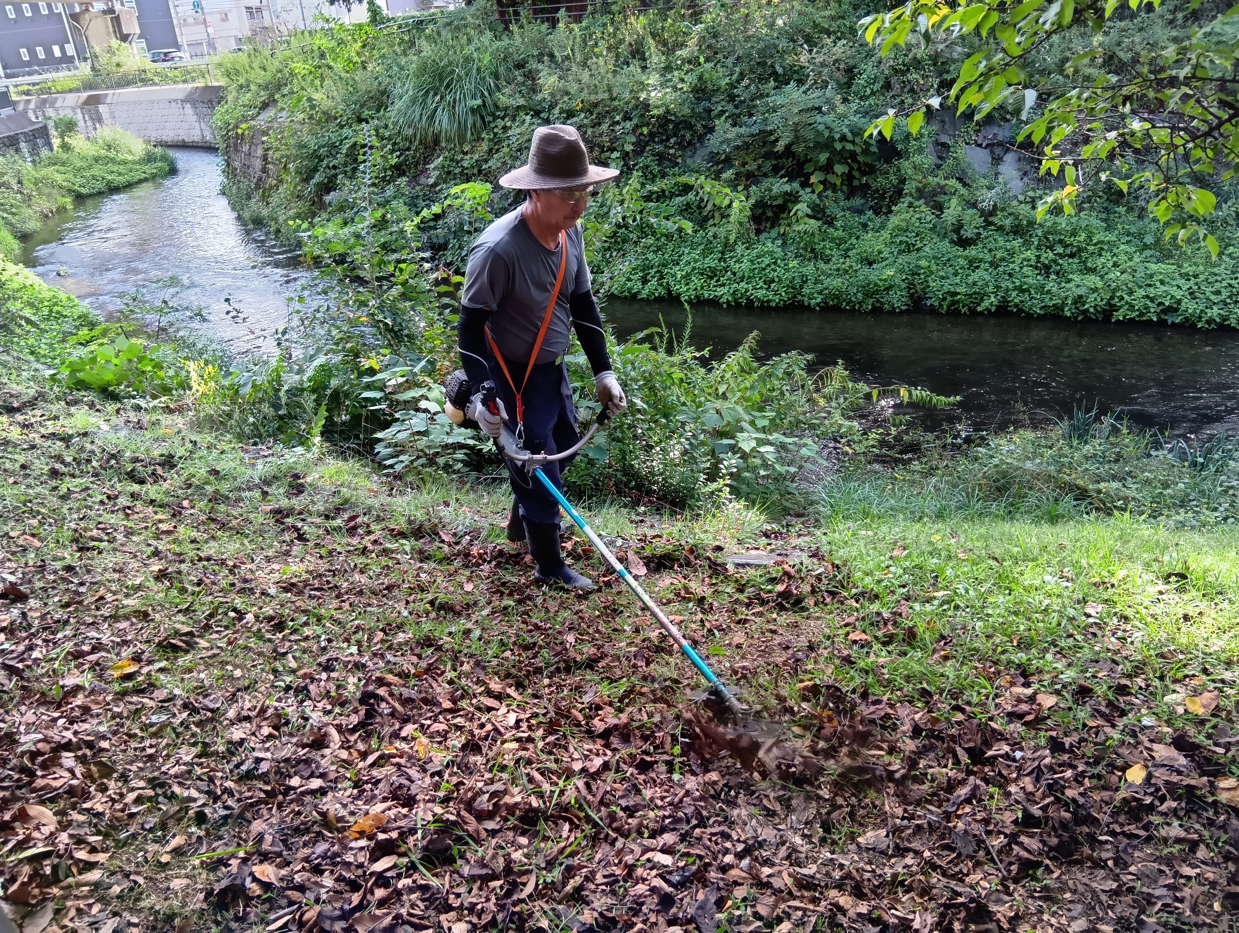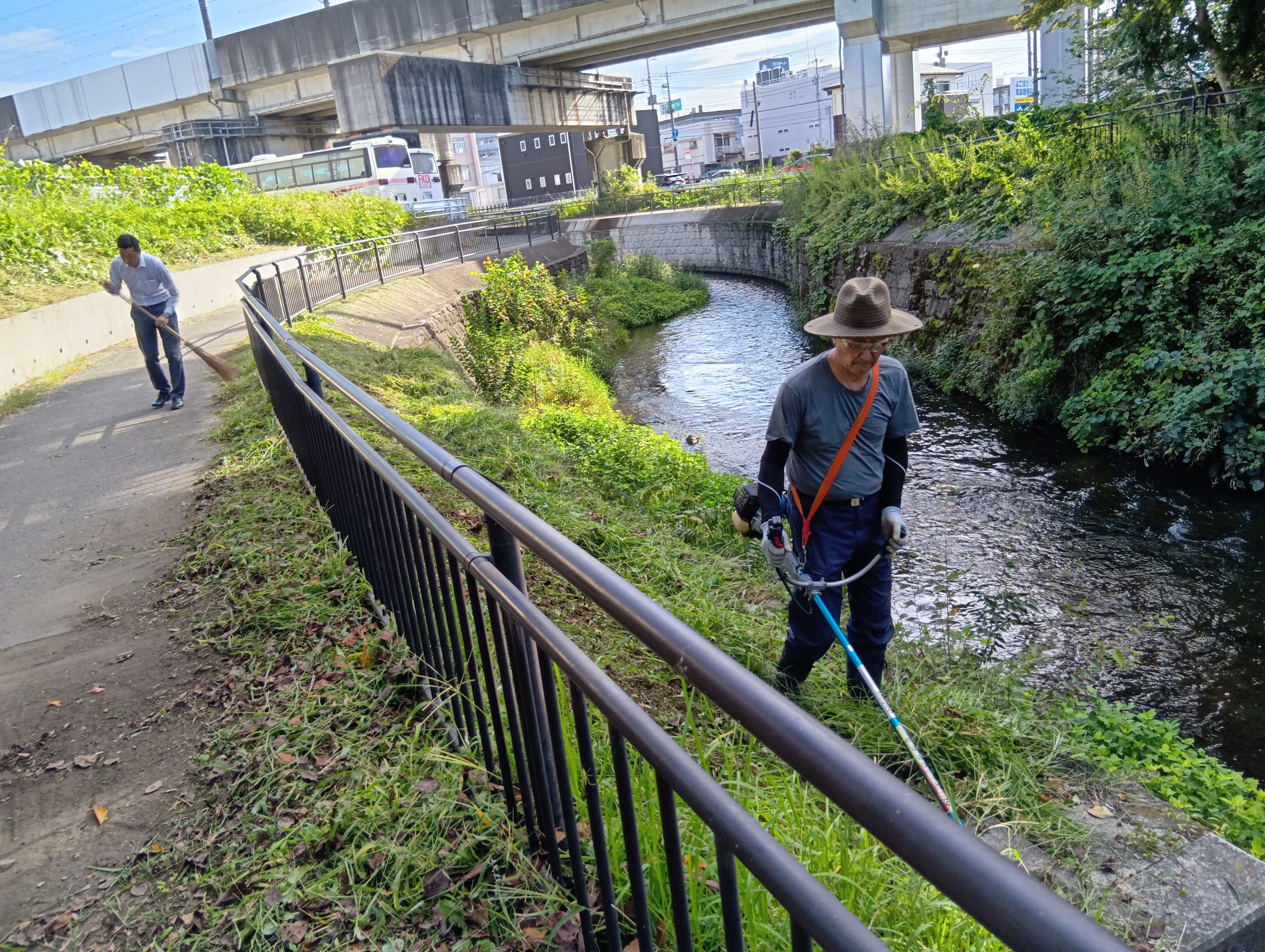 地域の環境美化の取組として、御用川沿い公園等の除草作業を年に3回行っております。 今年3回目の除草を行いました。