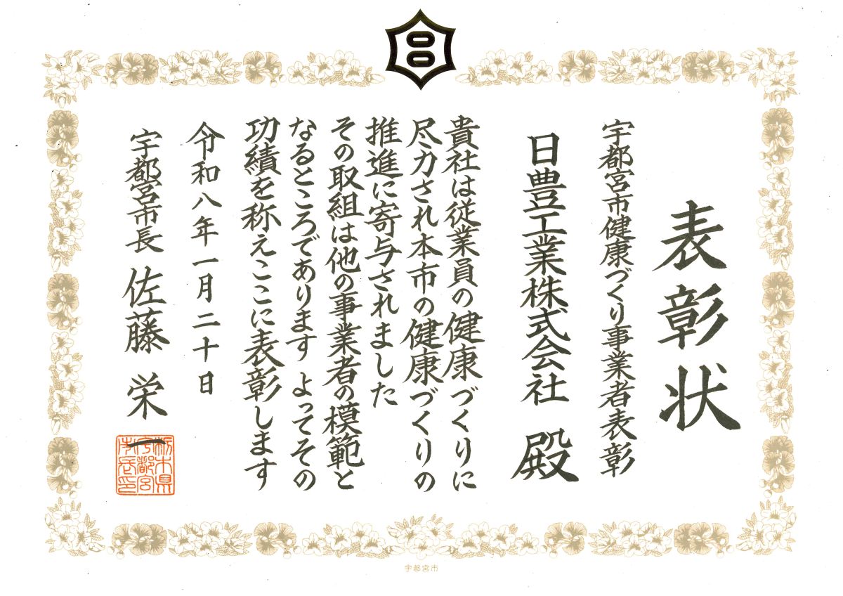 R7年度 宇都宮市健康づくり事業者表彰を受賞致しました。